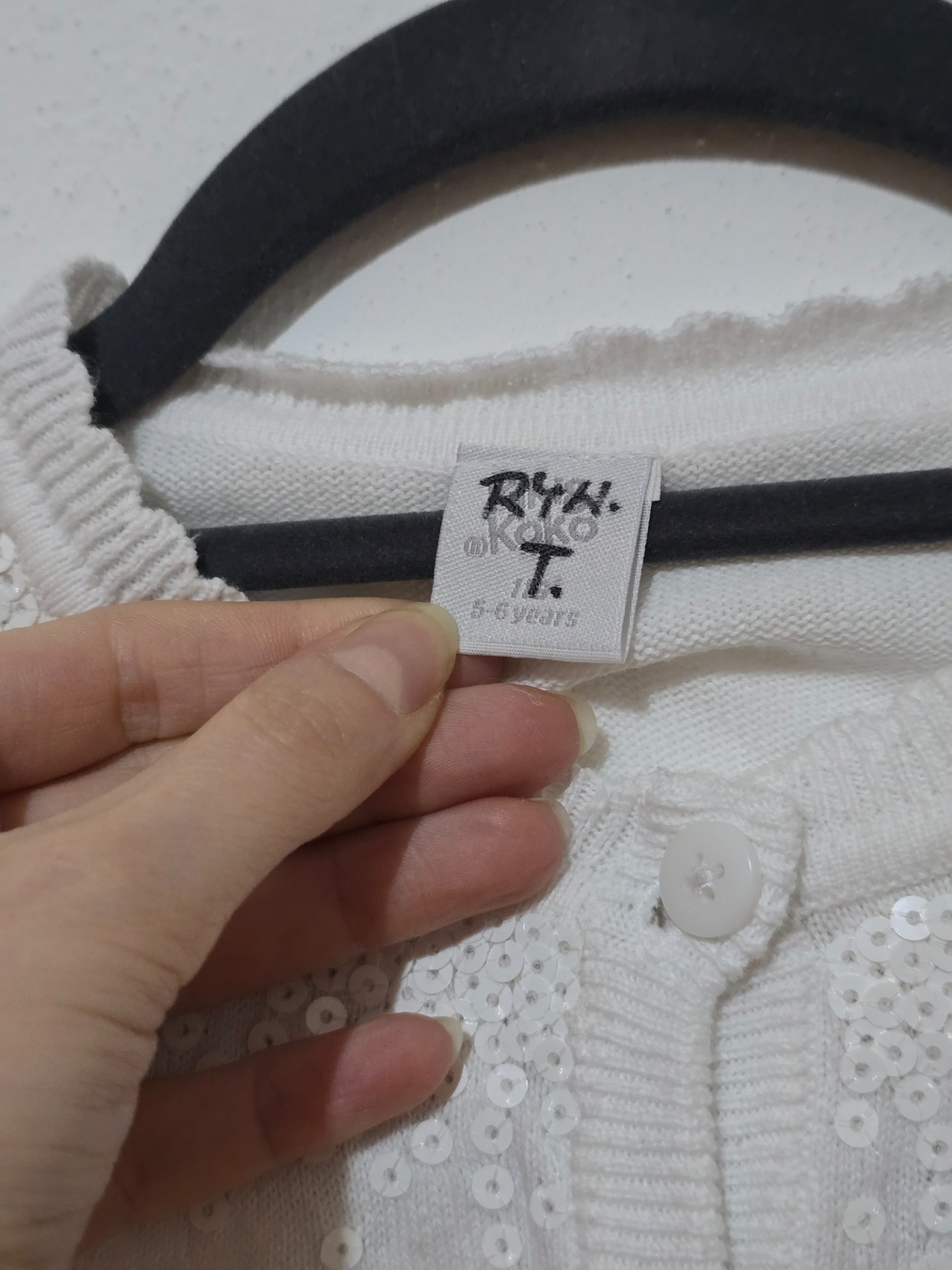 Bílý svetřík značky Kik velikost 116. Má sem tam pár žmolků.