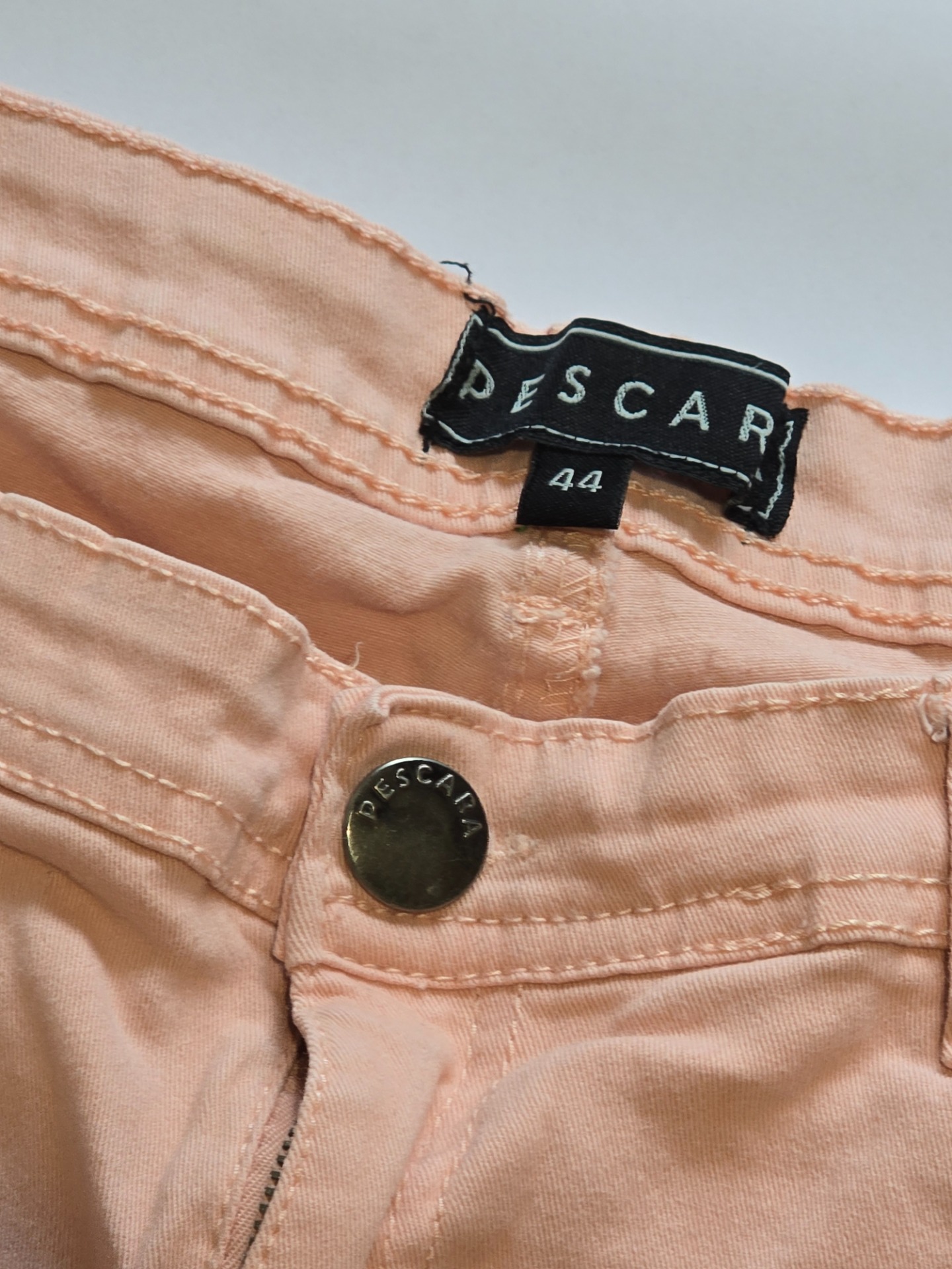 Pěkné rifle značky Pescara, velikost 44/XL, barva je jemně růžová, bez poškození.