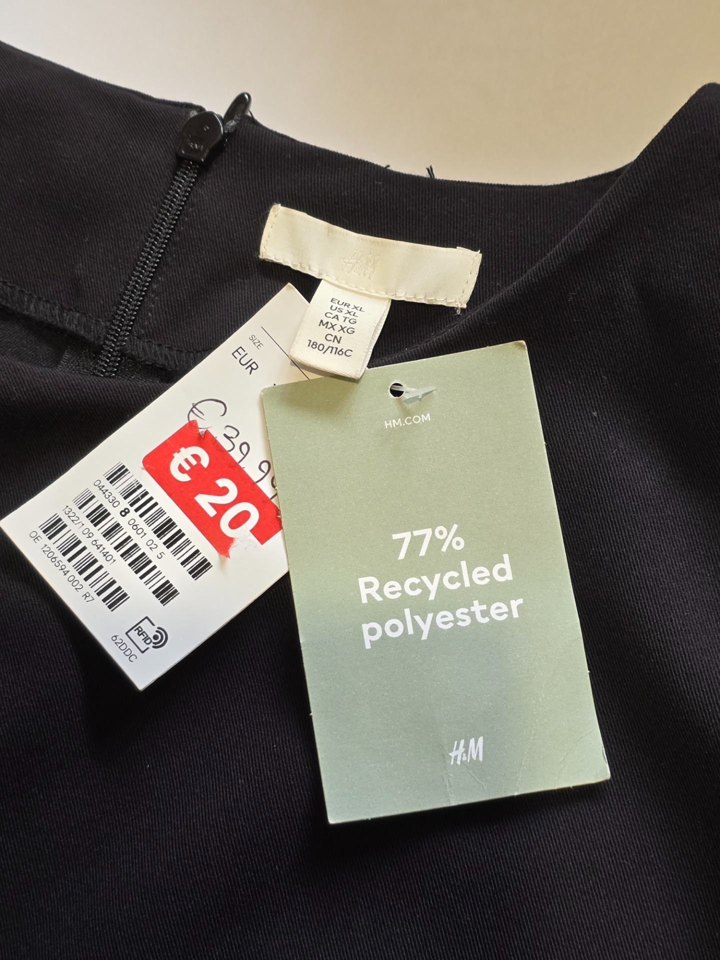 Nové šaty značky H&M s páskem, velikost XL, zapínání je na zádech na zip, ramena jsou vycpaná.